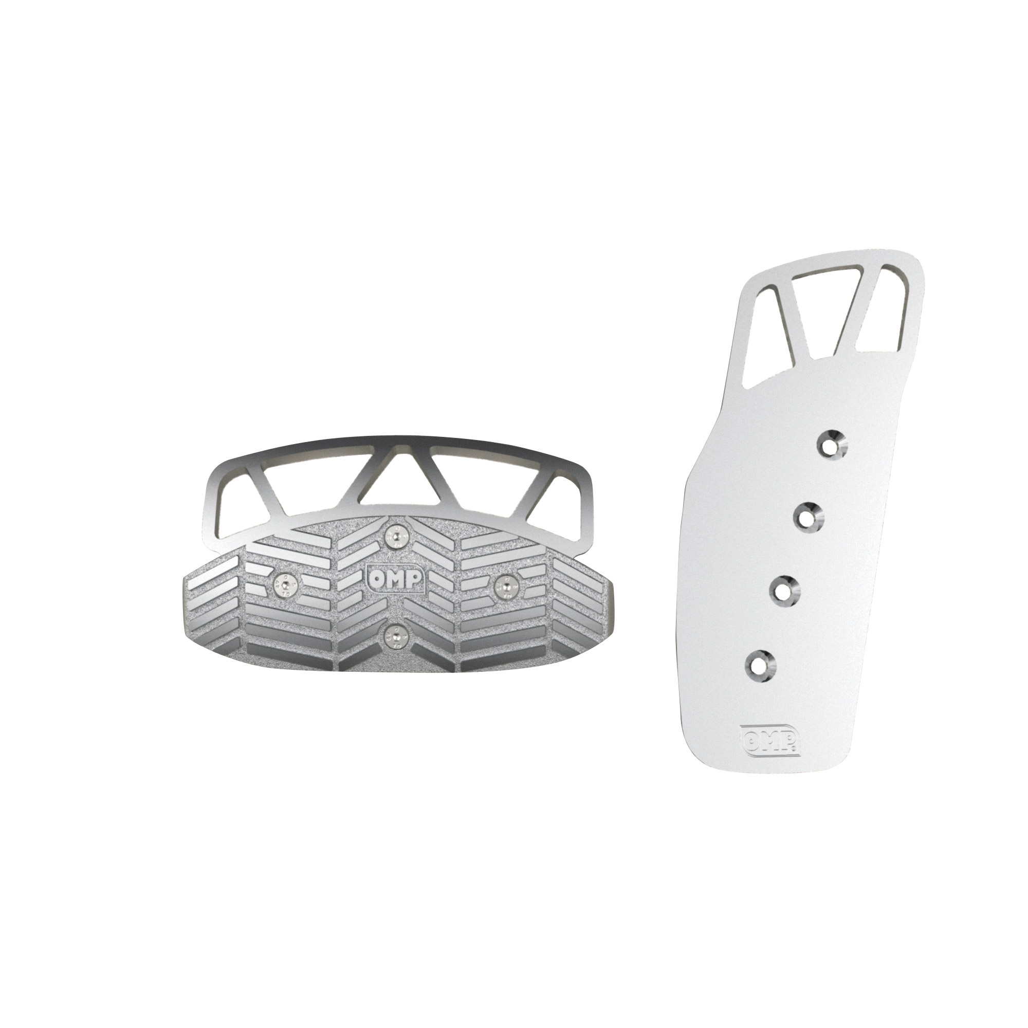 2 pedal set (long, floor hinged accelerator pedal and brake pedal suitable for automatic transmission) in anodized aluminium and sandblasted die-cast aluminium with anti-slip design. Complete with steel mounting hardware.