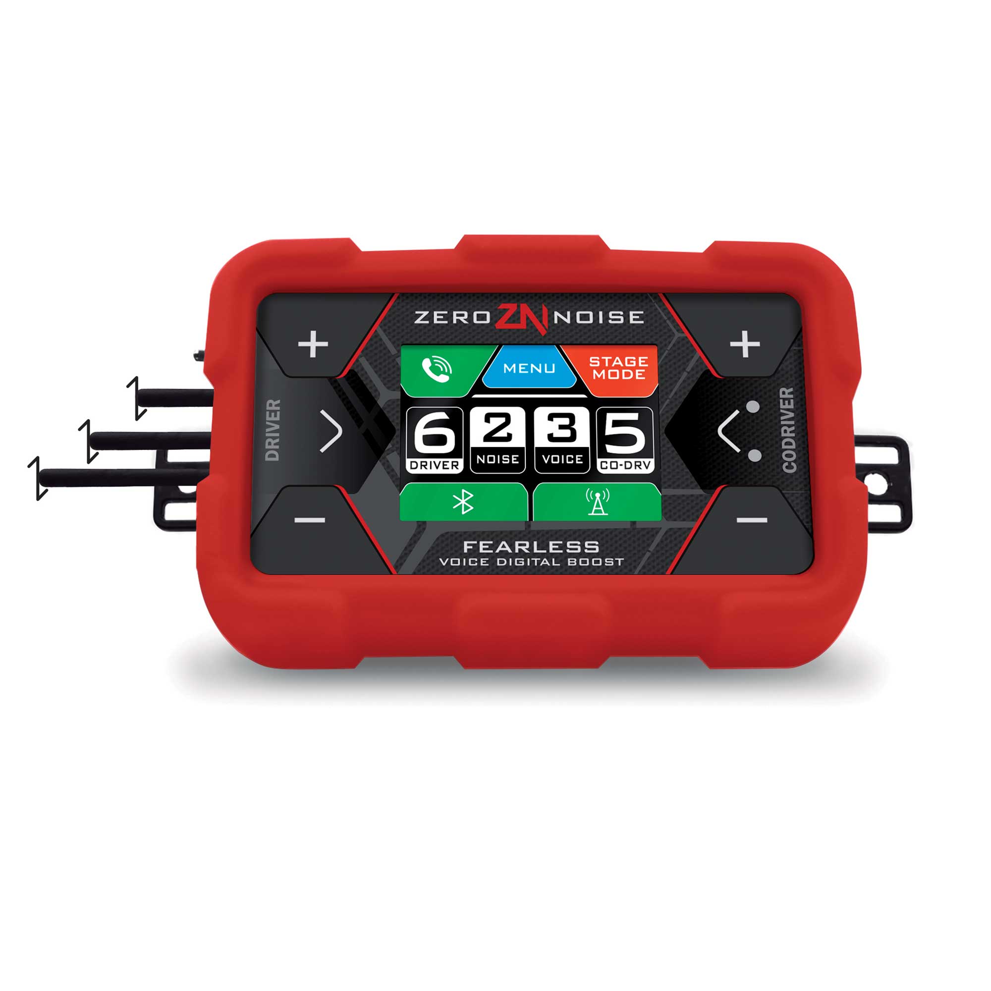 FEARLESS is the ZERONOISE DIGITAL amplifier with its unique adaptive noise cancelling algorithm and sound comfort. Today used by more 50% of the drivers in WRC, the electronics, look, and usability, make it the finest digital intercom in the market. A state of the art digital processor performs the adaptive noise cancelling and further sound settings are available. The display, in combination with the multifunction buttons, makes FEARLESS intuitive to use. FEARLESS’ modern design is enhanced by the anti shock and anti vibration silicon cover. It is compatible with any helmet intercom kit with Nexus connectors, although the system delivers best performances with the ZERONOISE intercom kit range. It is fully compatible with all ZERONOISE INTERCOMS KIT/HEADSET.