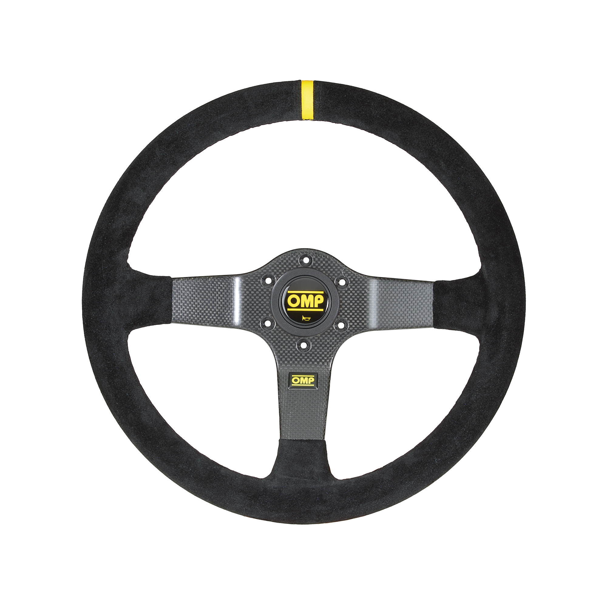 Carbon dished steering wheel, in suede leather and carbon made spokes. Black stitching.Carbon steering wheel is constructed as one integral piece. Supplied with horn button. Depth 95 mm. Weight 500 gr.