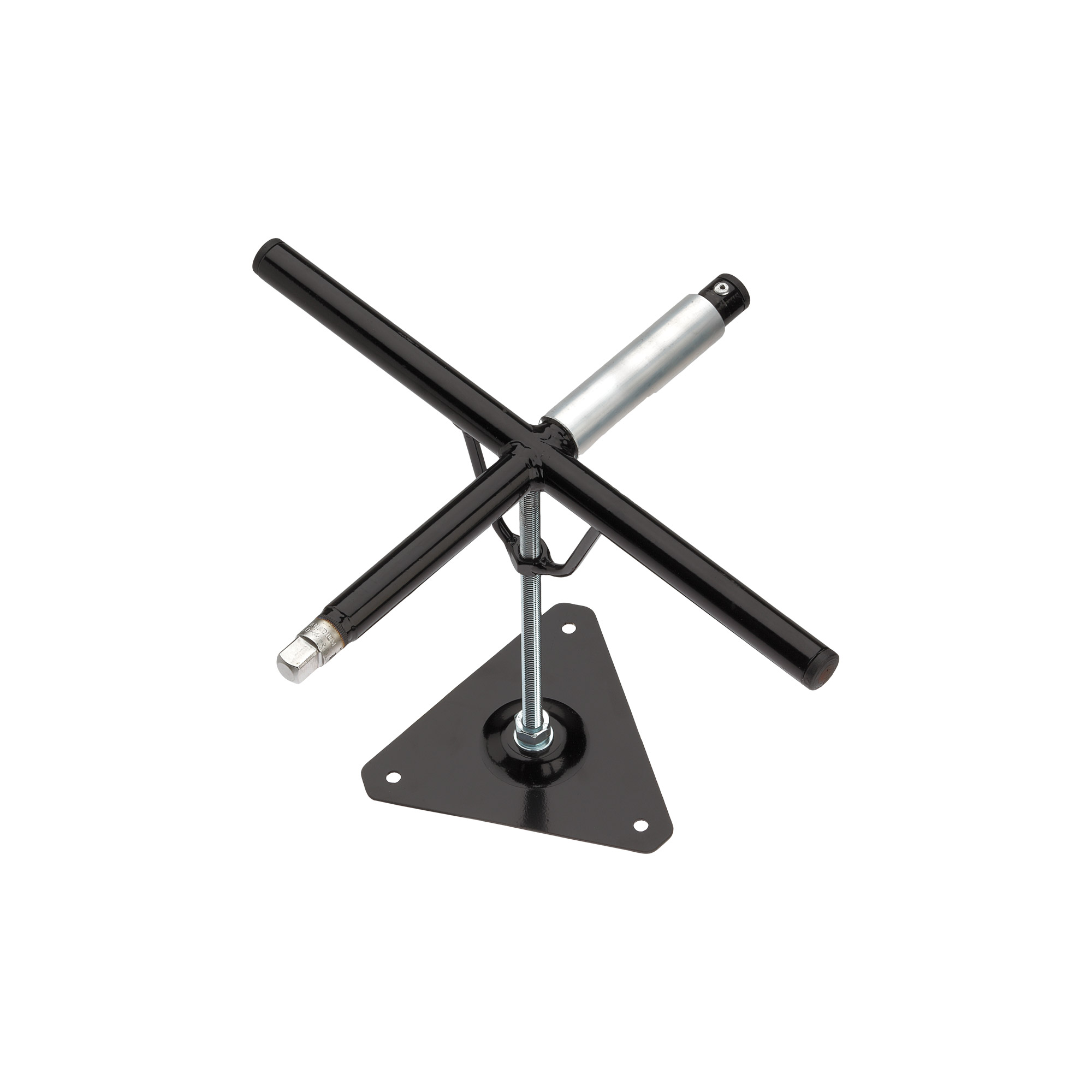 Combination cross wheel spanner and spare wheel support. Particularly useful for rally cars. Made of steel with durable powder coated finish.